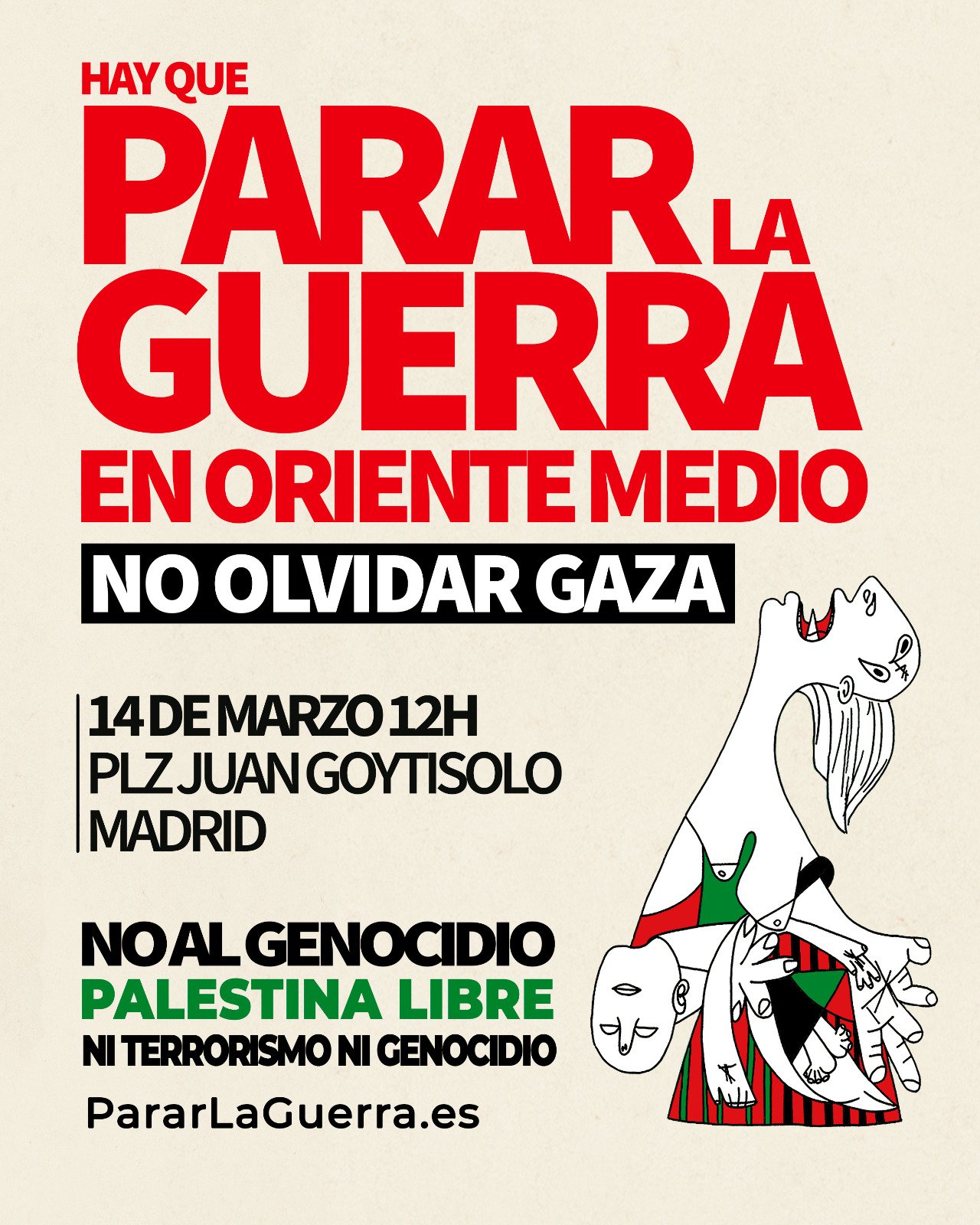 PararLaGuerra ha publicado 8 manifiestos en la prensa y ha convocado 7 movilizaciones en todo el país desde el 29 de octubre de 2023, denunciando el Genocidio en Palestina. La plataforma está formada por 150 organizaciones y más de 15 mil firmantes de 35 países, entre los que se encuentras centenares de profesionales destacados de la Cultura